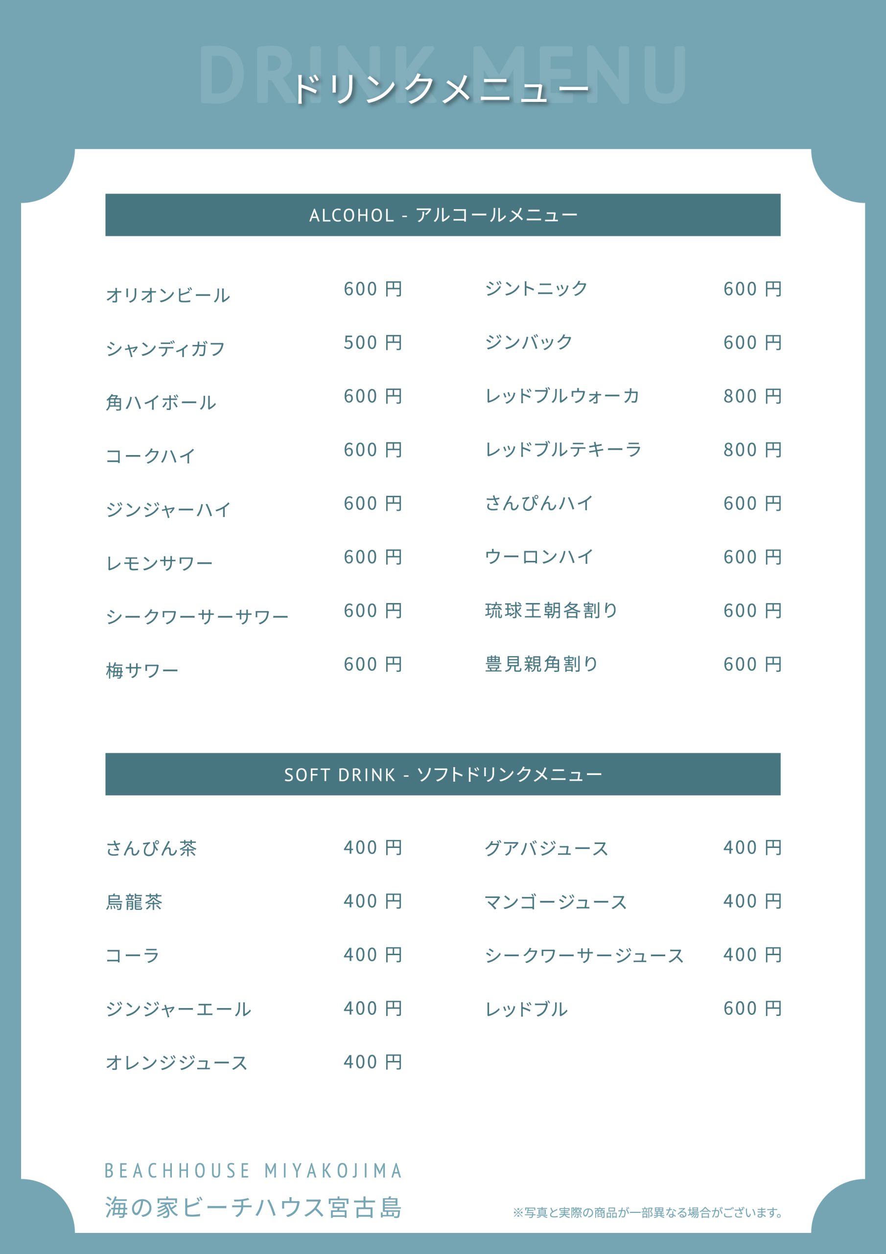 海の家ビーチハウス宮古島では沖縄本島名護市の人気レストランシェフ監修のガーリックシュリンプやハンバーガー、タコス等のオリジナルメニューを味わっていただけます。またドリンクメニューも豊富に揃えております。